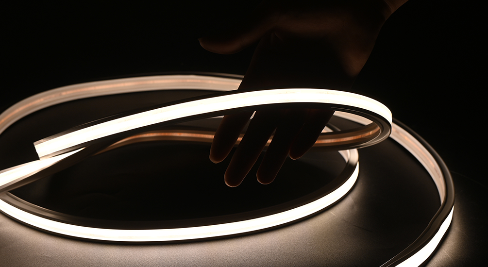 支持大范圍亮度調(diào)節(jié),可代替線條燈、洗墻燈及室內(nèi)主照明。 采用芯片倒裝技術(shù),勻光防眩光。 燈體柔韌可任意彎折塑形,安裝方便。 可實現(xiàn)無極調(diào)光、全彩變幻等效果。